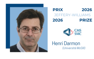Félicitations à Henri Darmon, professeur distingué James McGill à l’Université McGill et membre régulier du CRM, qui reçoit le prix Jeffery‑Williams 2026 de la Société mathématique du Canada pour ses contributions importantes et soutenues à la théorie des nombres et à la géométrie arithmétique. Figure de proue de la théorie moderne des nombres, il s’est [...]